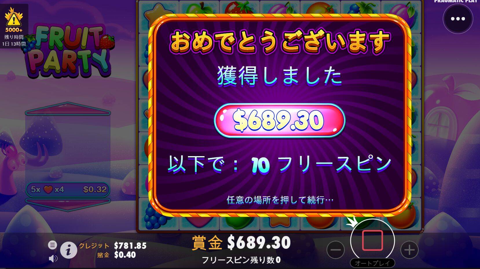 一切当たらず吸い込まれ続けてましたが、ハワイ36連→スタプリ通常で×250落下→調子に乗ってフルパBUYと、畳みかけて配当獲得しました!